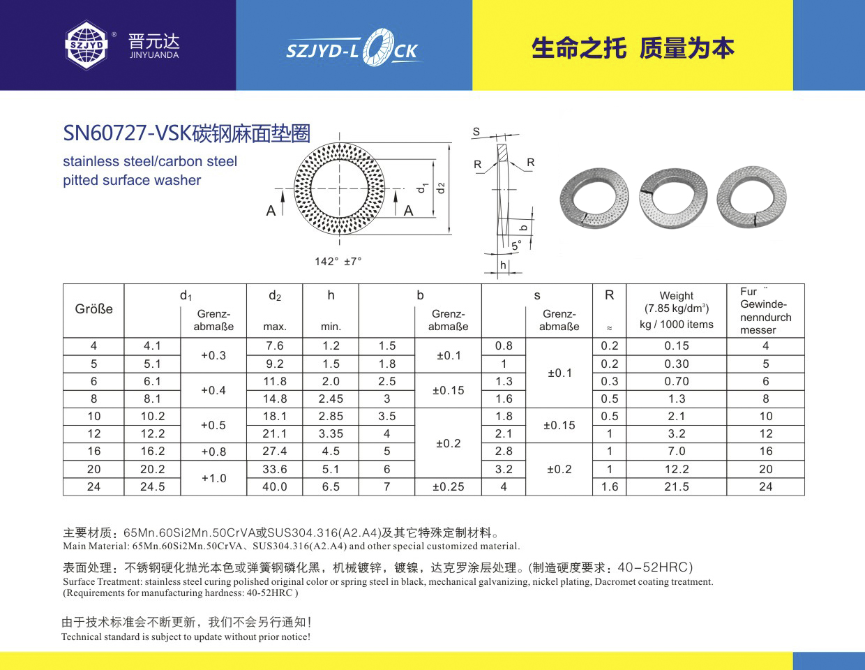 SN60727-VSK墊圈由西門子軌道交通公司設計、基本張力摩擦構造原理的緊固防松方式。麻面花紋與螺栓鎖緊面接觸增加了鎖緊效果!