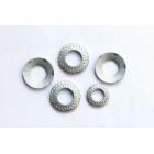 SKK標(biāo)準(zhǔn)接地墊圈、該墊圈是一款法式鎖緊墊圈的改良設(shè)計(jì)產(chǎn)品、表面不規(guī)則S形條紋有預(yù)緊防松作用。墊圈的背面設(shè)計(jì)有六個(gè)爪形剌破角!主要功能是在配合螺栓螺釘擰緊時(shí)可以剌破金屬基體表面!主要功能是剌破作用、因此也有人叫剌破墊圈、帶爪觸地墊圈!