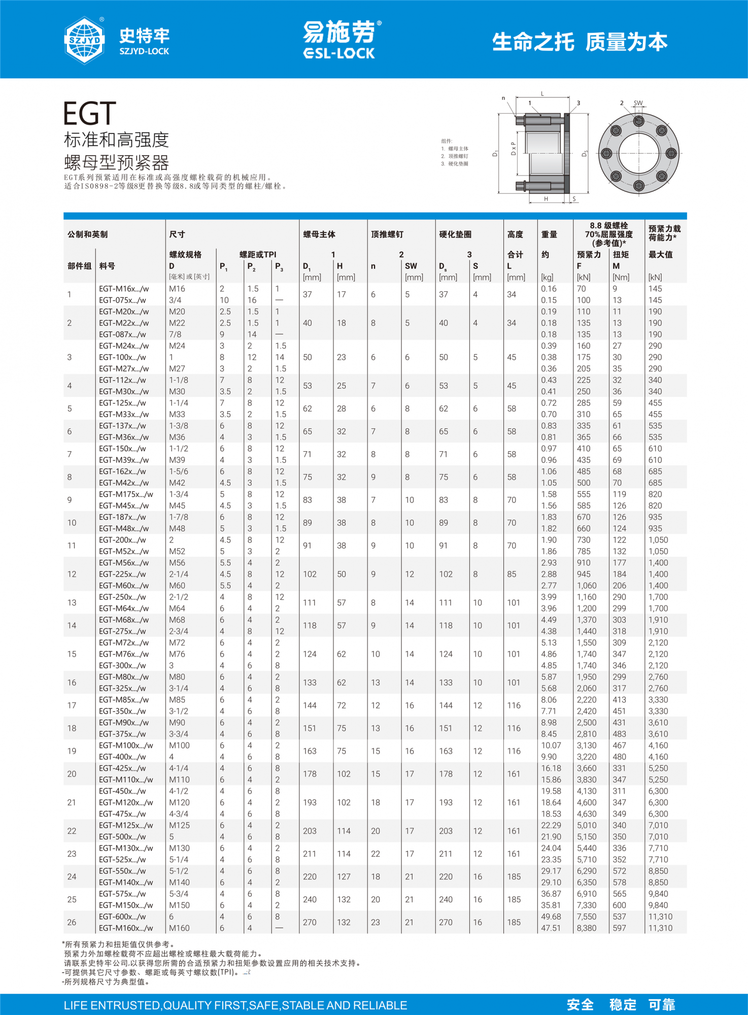 多頂推超級(jí)預(yù)緊器,可在很小空間安裝,使用簡(jiǎn)單工具即可輕松預(yù)緊,節(jié)省安裝時(shí)間,ESL-LOCK品牌易施勞超級(jí)螺母具有完全的防松鎖緊功能,可多次拆卸重復(fù)使用。特別適用于M24規(guī)格以上大型螺栓鎖緊!一擰永固,永不松動(dòng)!使用常規(guī)格為合金材料及特殊不銹鋼合金材料以及鎳基合金材料!更多了解歡迎咨詢我們.....
