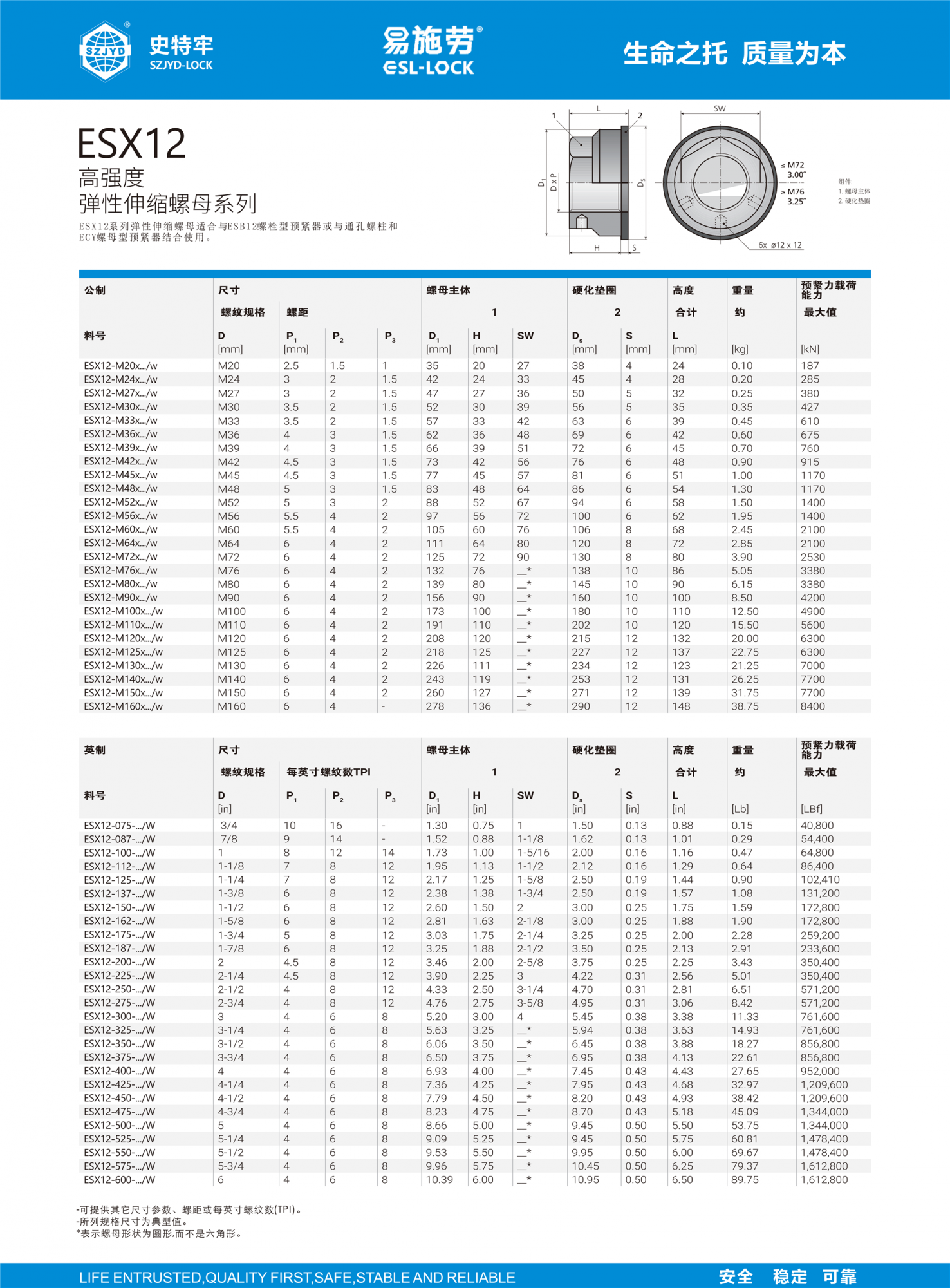 多頂推超級預緊器,可在很小空間安裝,使用簡單工具即可輕松預緊,節(jié)省安裝時間,ESL-LOCK品牌易施勞超級螺母具有完全的防松鎖緊功能,可多次拆卸重復使用。特別適用于M24規(guī)格以上大型螺栓鎖緊!一擰永固,永不松動!使用常規(guī)格為合金材料及特殊不銹鋼合金材料以及鎳基合金材料!更多了解歡迎咨詢我們.....